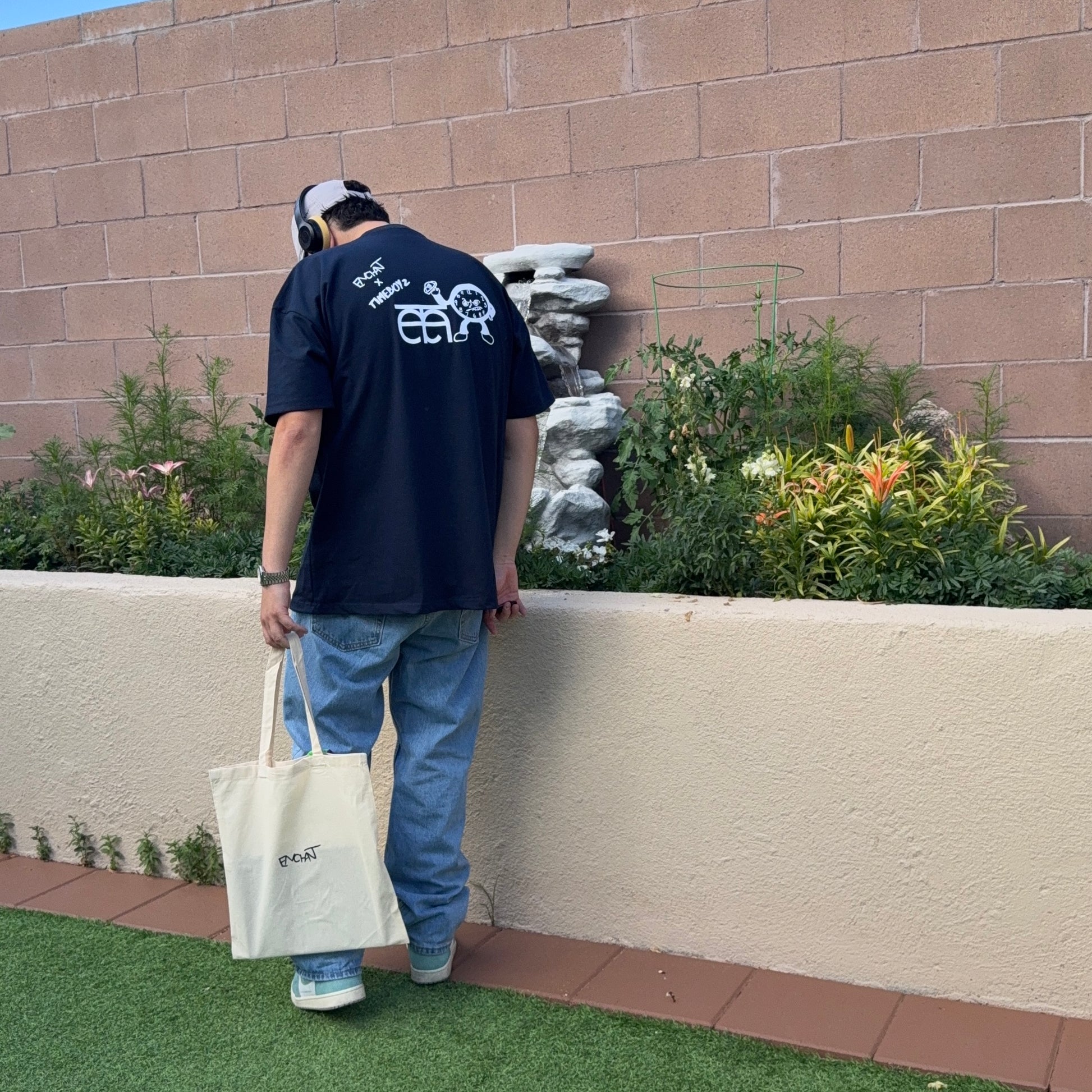 ENCHANT X TIMEBOYZ Tee. Perfect collab between old college friends. Two unique logos combined in one makes the tee very special.